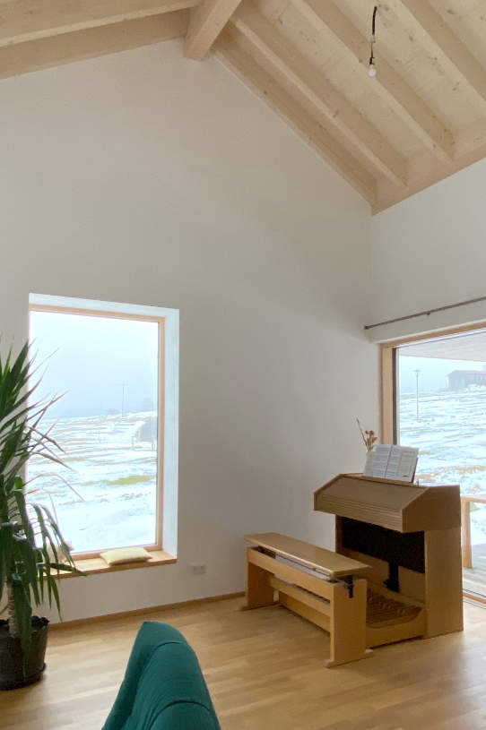 Einfache Materialien, wie monolithische Ziegel, Kalkzement-Putze, Holz am Boden und für das Dach ermöglichen Behaglichkeit und ermöglichen sehr gute Dämmeigenschaften. Eine Erdsonde kombiniert mit PV-Anlage und Wärmepumpe, macht dieses Haus effizient und unabhängig von Energiepreisentwicklungen.