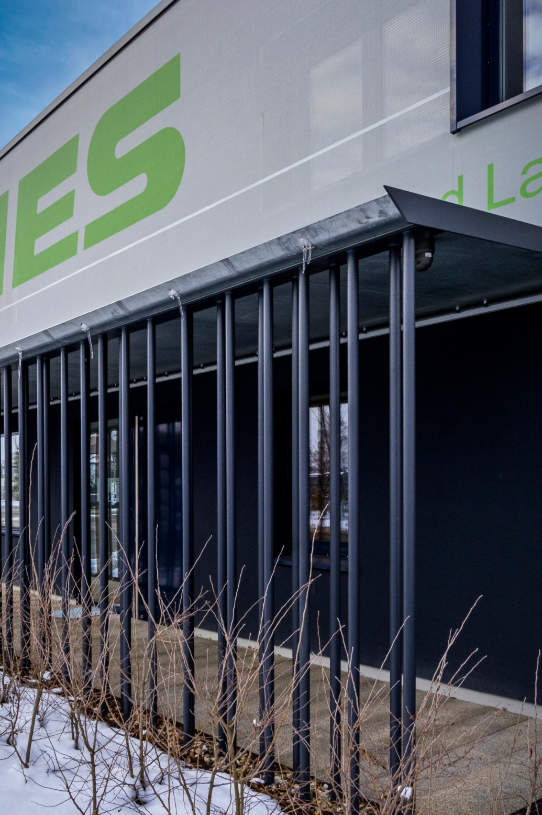Gestaltung eines neuen Hauptzugangs und des CI-Konzepts für ein weidener Bürogebäude aus den 70er-Jahren.